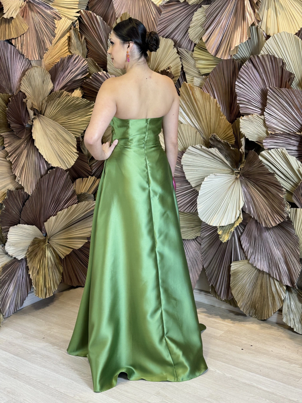 Nosso modelo Liliana possui decote tomara que caia e busto drapeado.