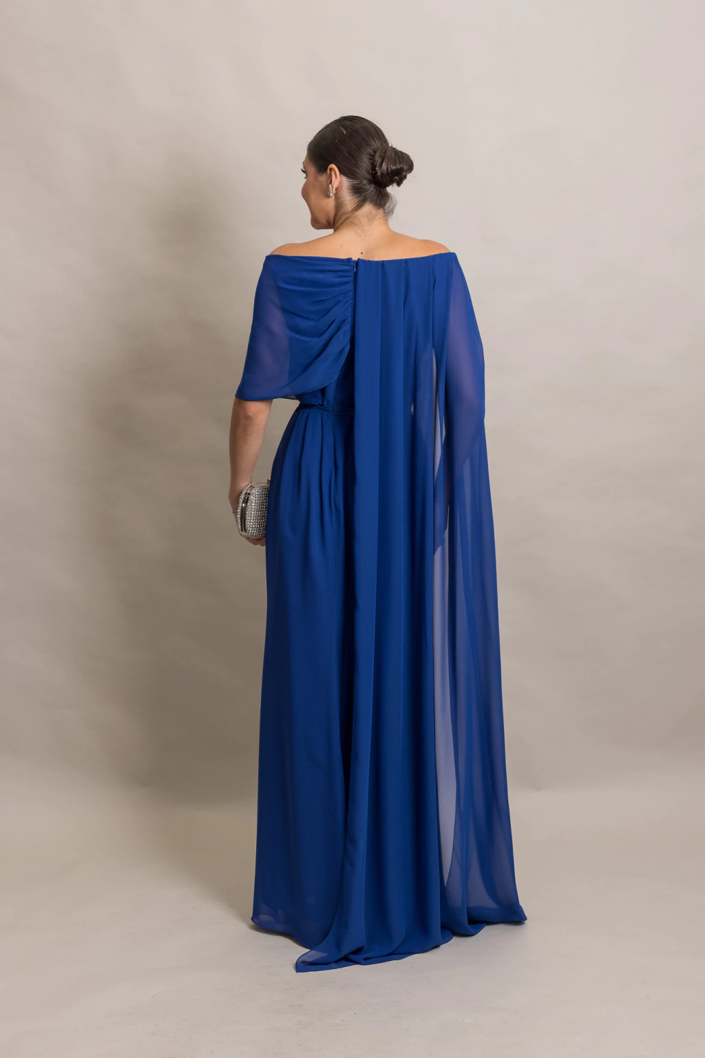 Nosso Vestido Iris possui capa fixa com aplicações de flores em 3D. Possui capa longa em um dos lados também fixa a peça.