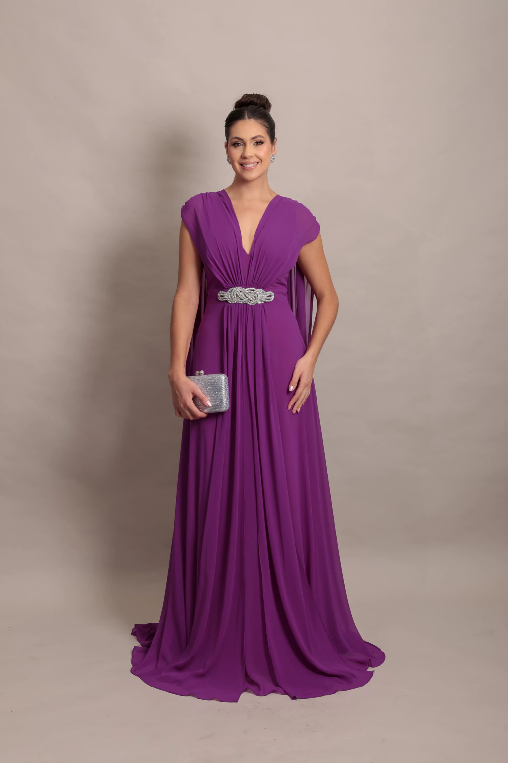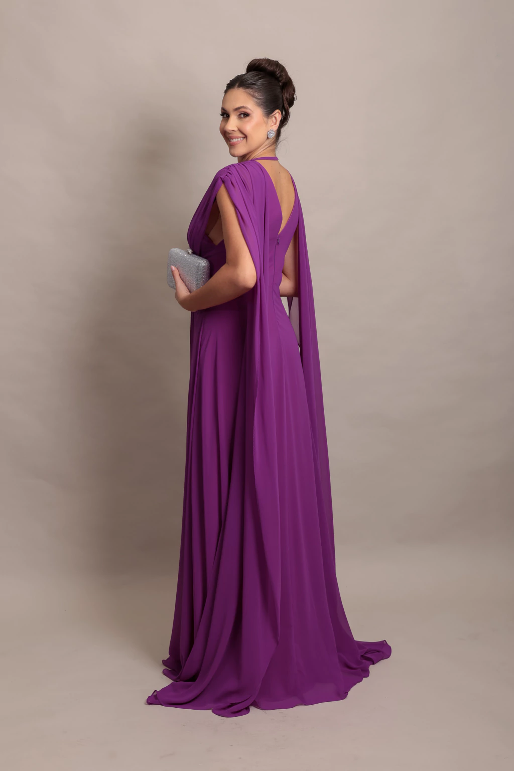 Nosso Vestido Zara é confeccionado em Crepe Chiffon com caimento leve e fluído.