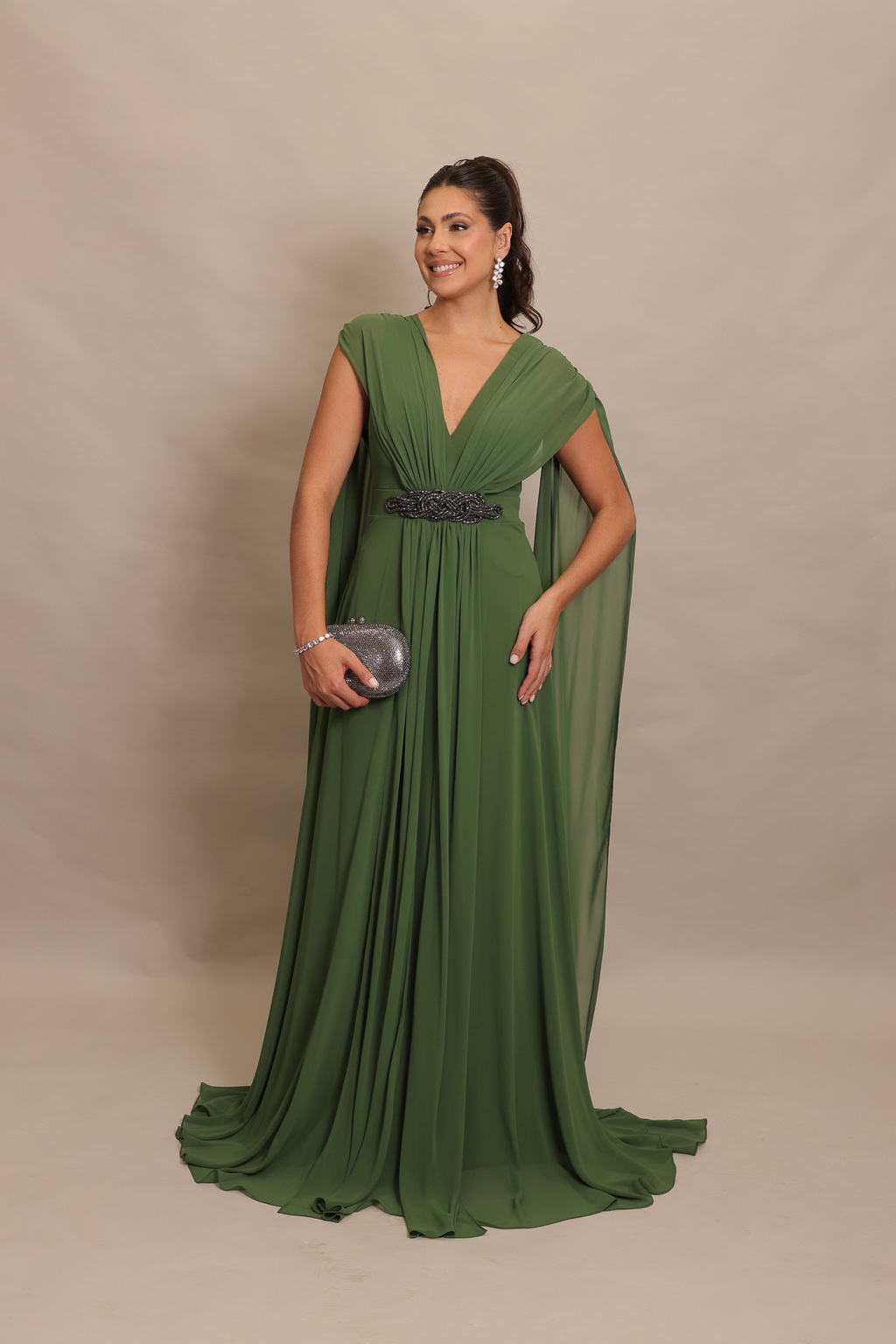 Nosso Vestido Zara é confeccionado em Crepe Chiffon com caimento leve e fluído.