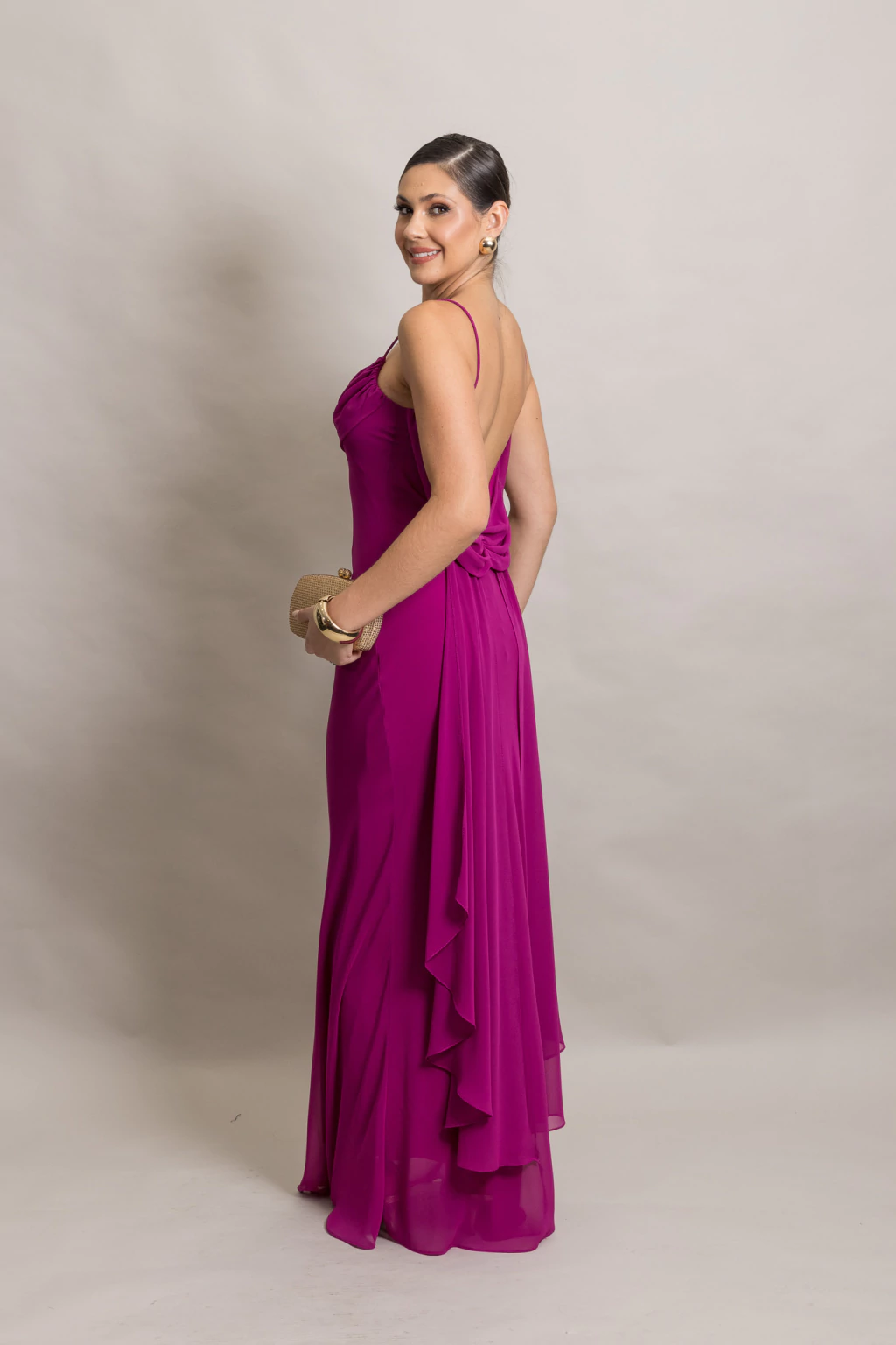 Possui costas abertas com decote profundo.