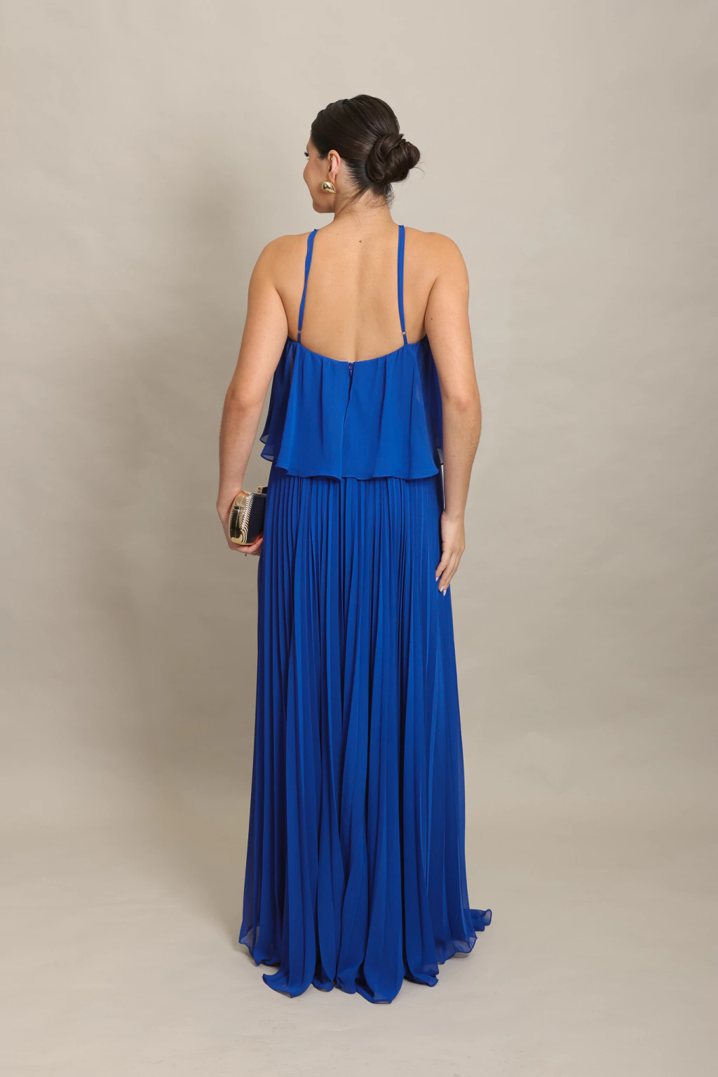 Confeccionado em Chiffon, possui leveza e fluidez em tecido plissado.