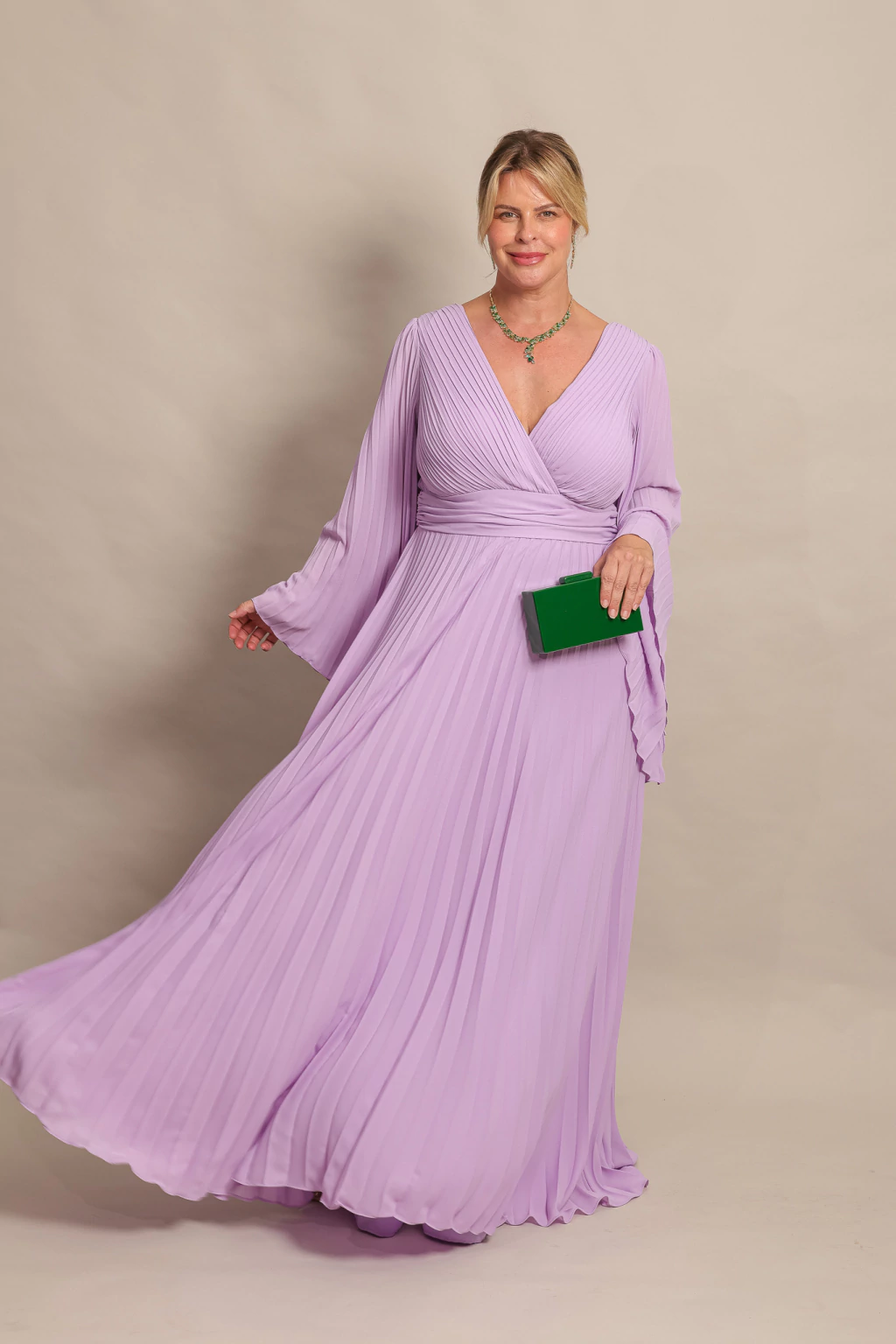 Nosso modelo Linda possui decote V frontal e nas costas. Possui manga estilo "sino".