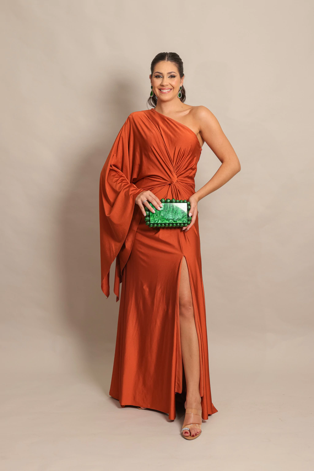 Nosso Vestido Pietra possui modelagem sereia com calda mais alongada.