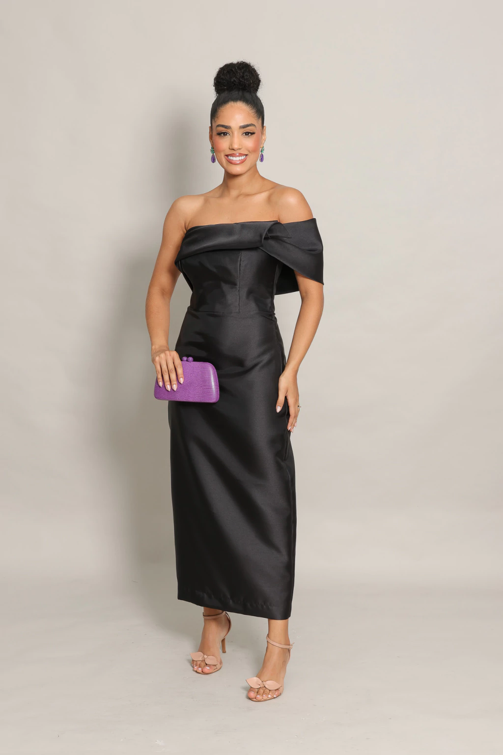 Nosso Vestido Zilu é confeccionado em Zibeline. Modelagem um ombro só com saia reta.