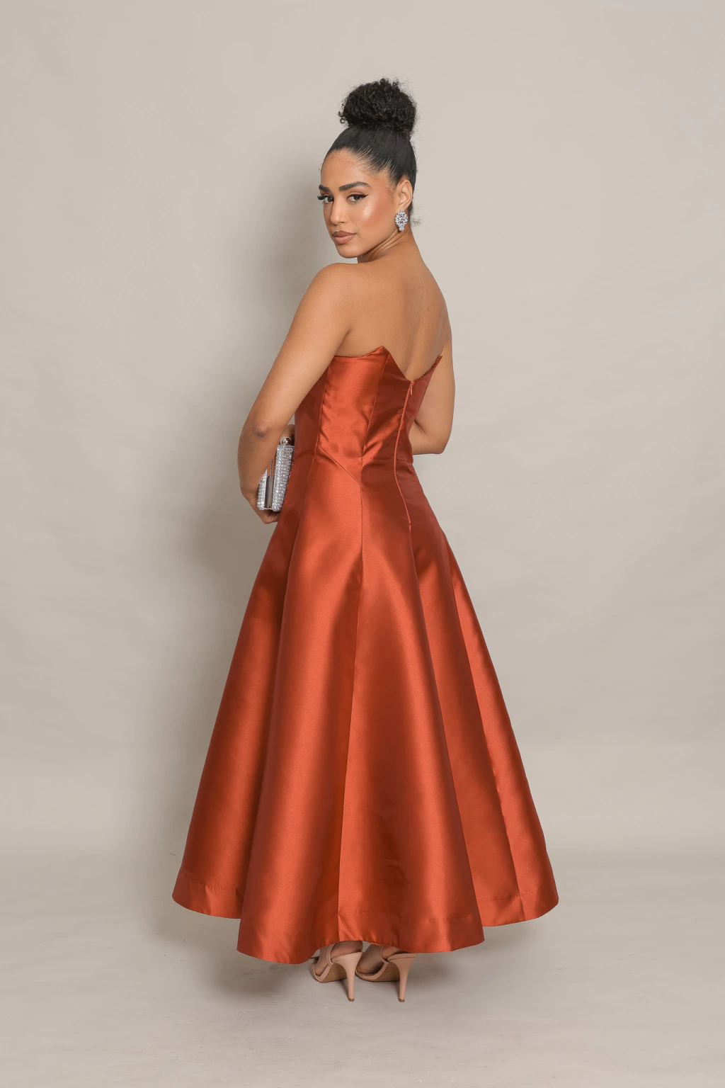Nosso Vestido Bianca é confeccionado em Zibeline. Modelagem tomara que caia com saia evasê.
