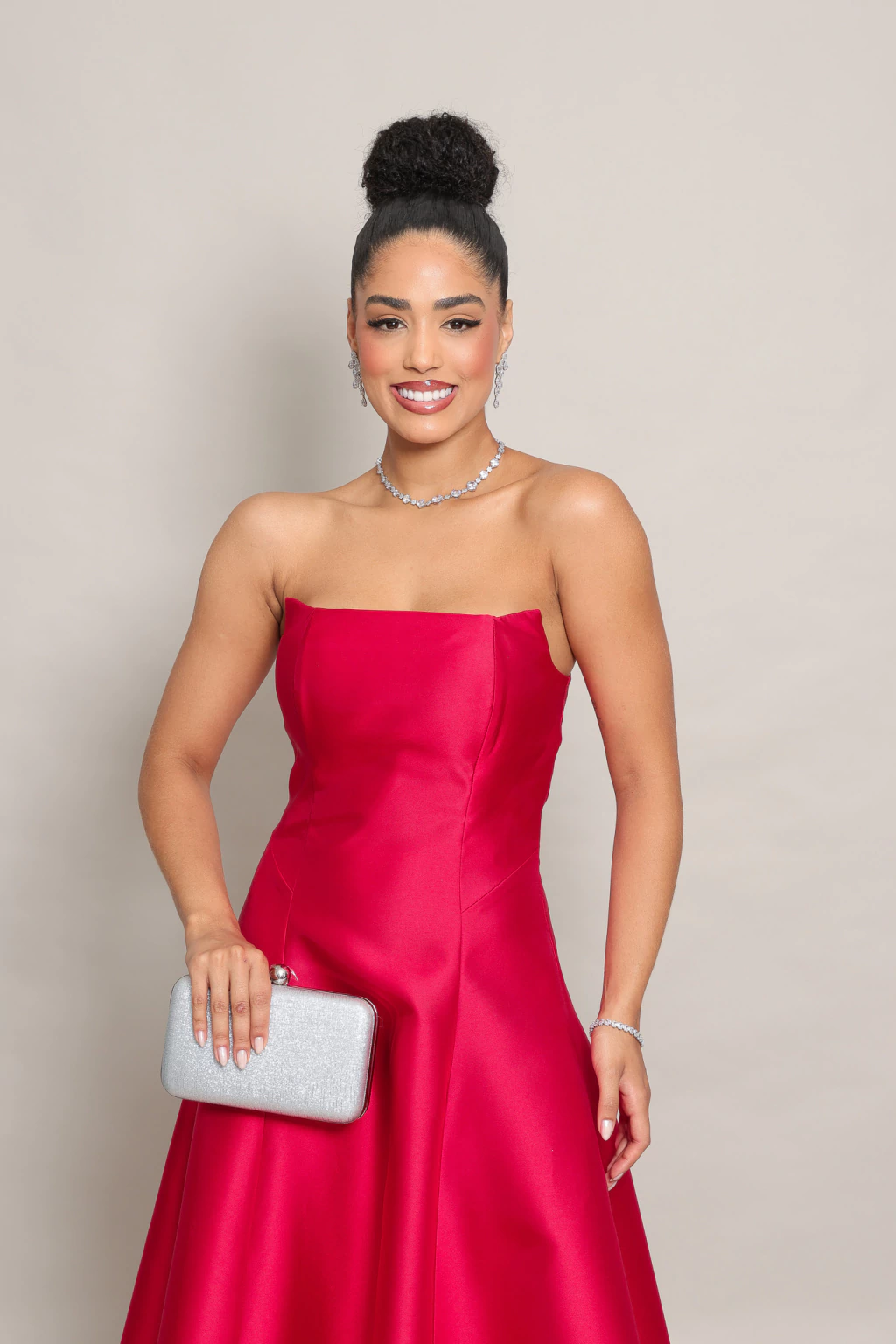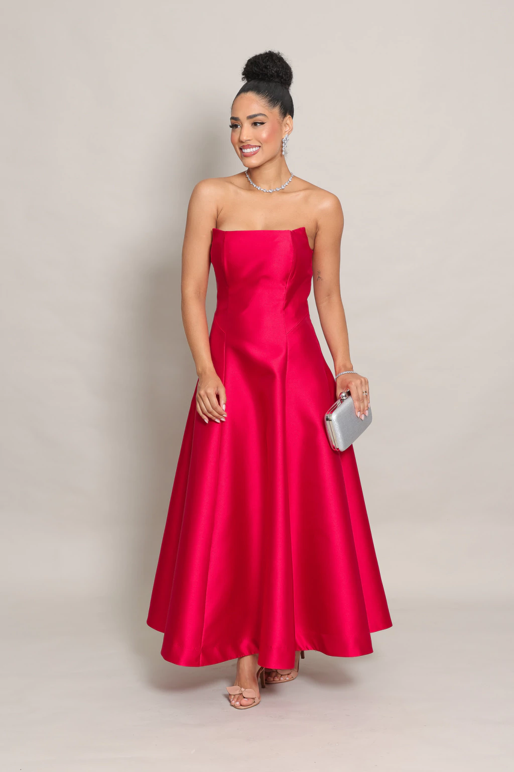 Nosso Vestido Bianca é confeccionado em Zibeline. Modelagem tomara que caia com saia evasê.